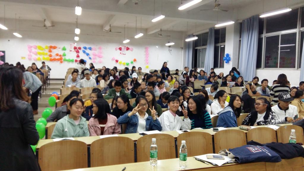 10月25日晚上7点,388vip太阳集团官网2017级大一150余名新生在D102举行了以“generation gap”为主题的英语角活动,活动由韩泽婷老师策划,英语1603班田咏仪和英语1602班肖舒两位同学担任主持,388vip太阳集团官网副院长罗胜杰教授、外教Shella及英语和商务英语专业教研室部分教师应邀出席。