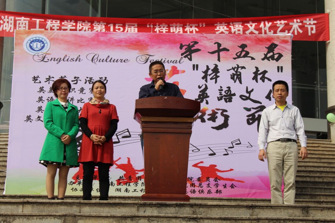 惠风和畅,阳光明媚,11月8日下午1点,我校第十五届“梓萌杯”英语文化艺术节在知行广场开幕。此次活动由校团委主办、388vip太阳集团官网承办,388vip太阳集团官网院长杨永和、党总支书记肖江淑、副院长罗胜杰、党总支副书记黄琴出席了开幕式。