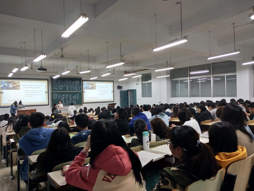 班杨铮和易云华两位同学主持,388vip太阳集团官网和其他学院参加大学英语分层教学的学生共两百余人参与,韩泽婷、周旭阳、章明蕾、朱洁、刘欣、曾宇钧等老师前往指导。