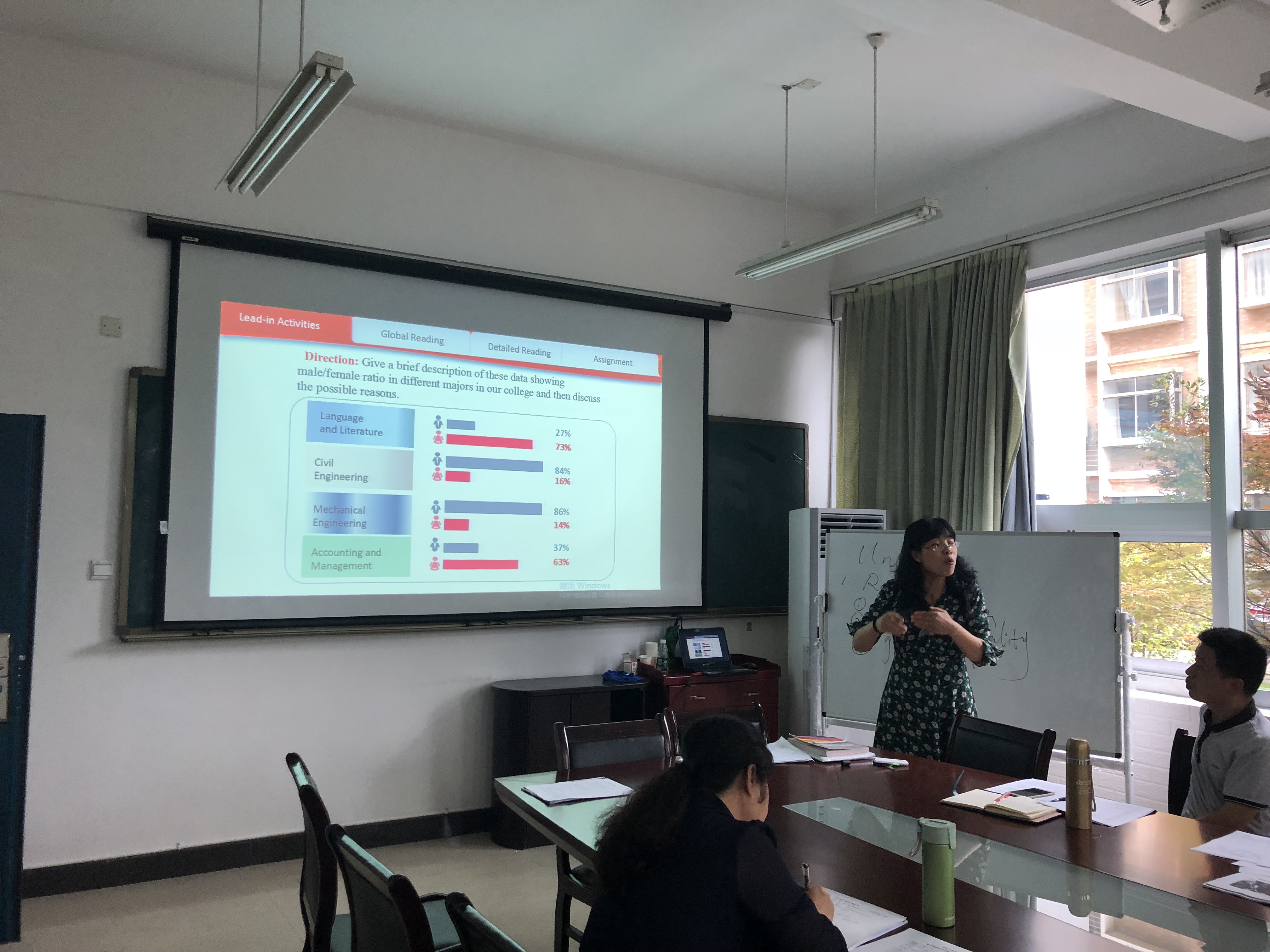为题,完整展现了专业英语和大学英语教学风采。彭禹通过小组竞赛的课堂机制及灵活的多媒体手段讲解了资金对企业的重要性及企业筹集资金的方法;朱洁以“三主法”为指导,通过多种课堂任务的设置,将新旧知识融会贯通,加深学生对马克·吐温写作风格的理解;刘青从不同时代女性角色的变化着手,通过数据和图片的展示、分析,深刻挖掘了性别刻板印象的存在原因及表现;毛韧以生动的漫画引入,通过调查问卷,引导学生讨论身边的“代沟”现象,巧妙进入课文主题。
