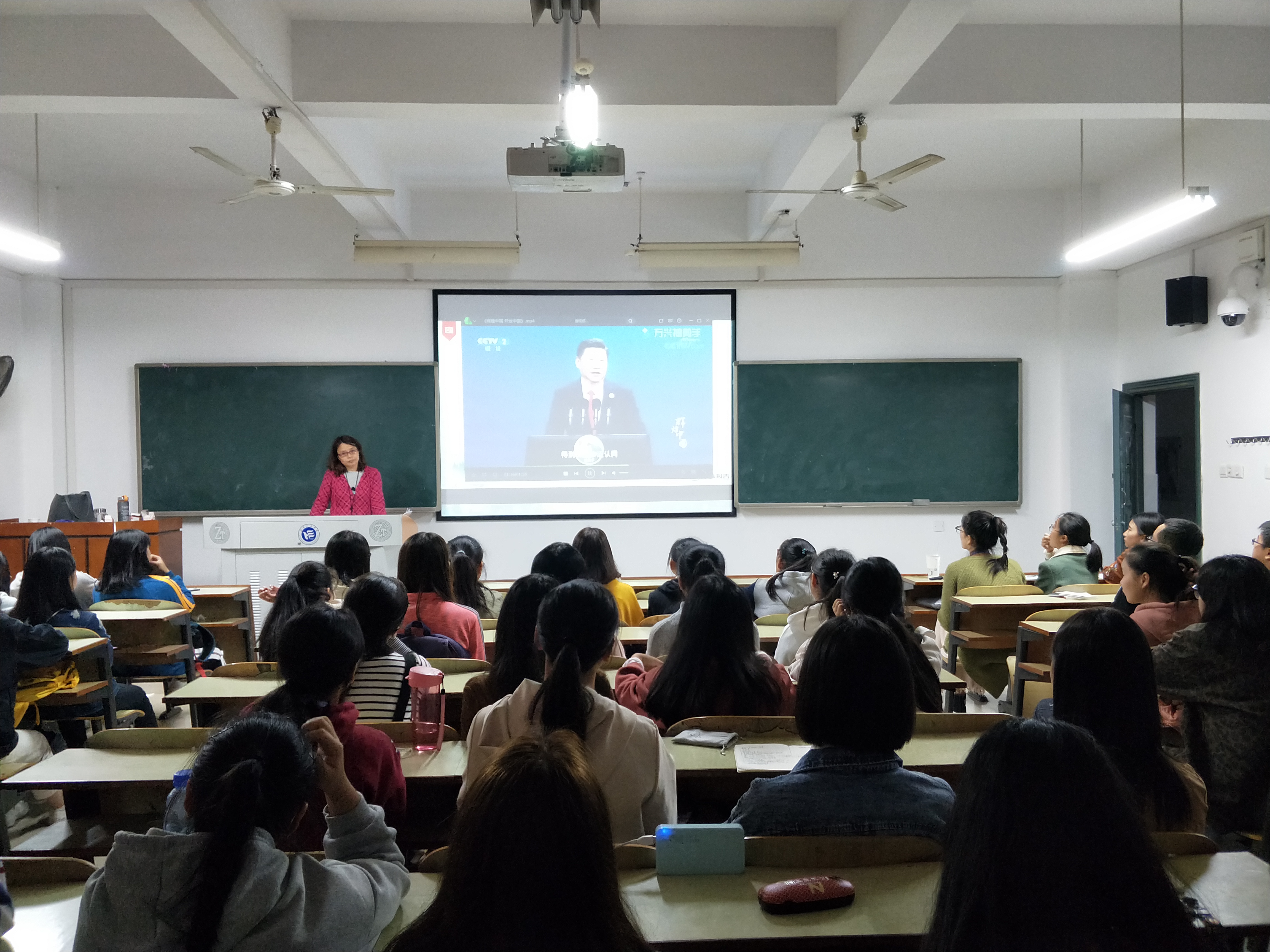 肖江淑首先从日常生活、交通出行方式、医疗卫生等现状出发,分析了中国改革开放40年来翻天覆地的变化,引导大家得出了只有改革开放才能发展中国的结论。紧接着,她用生动形象的视频与图片、对比鲜明的数据、丰富的的案例向大家讲述了封闭经济弱国到开放型全球经济大国、贫穷到整体小康、世界舞台边缘到世界舞台中央,中国完成的美丽蜕变的故事。肖江淑结合国家、学校、学院创新创业教育及其成果,进而论证了改革开放是一条正确之路、强国之路、富民之路。随着讲座的深入,看到中国巨变,在场的学生无不欢欣鼓舞。最后,肖江淑将十九大报告提出的构建“人类命运共同体”的理念同当前全面深化改革取得的主要成就进行结合分析,对未来中国如何继续“将改革开放进行到底”做了美好展望。