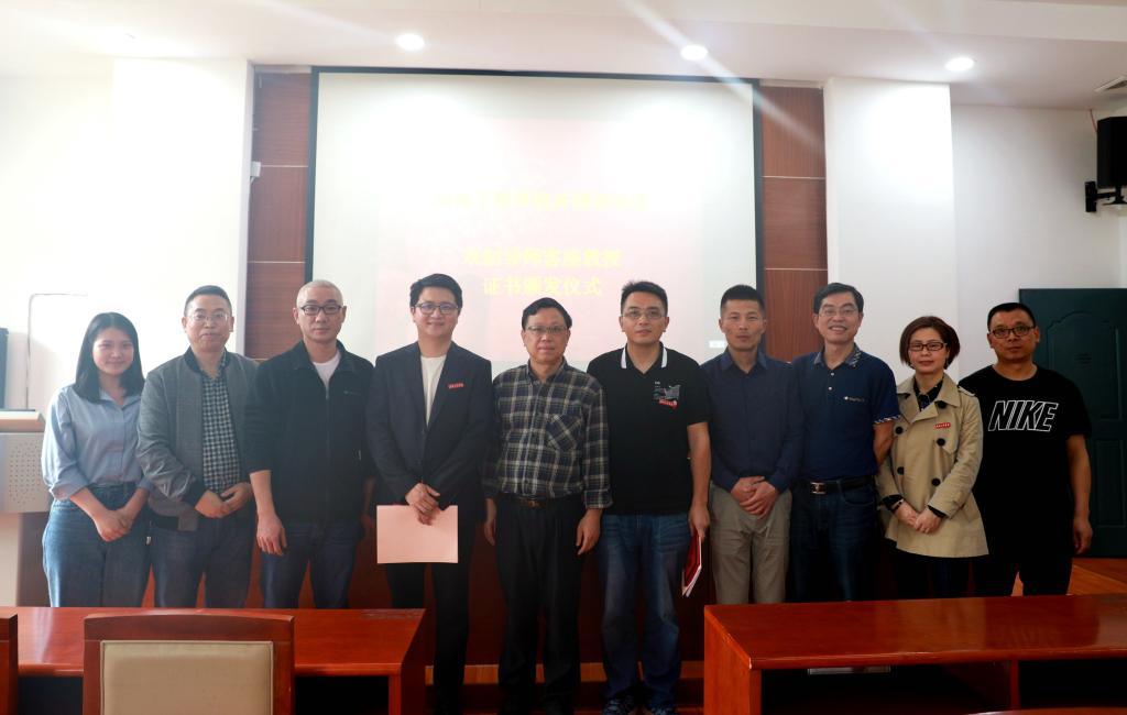 助学基金颁发后,娄炳林、杨永和分别为杨杰、邓凌波颁发了《创新创业导师》、《客座教授》聘书并为他们佩戴校徽。