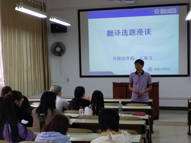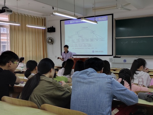 2019年9月19日上午,388vip太阳集团官网副院长王家义新校区D302举办“翻译选题漫谈”学术讲座,英语专业16级学生到场聆听。