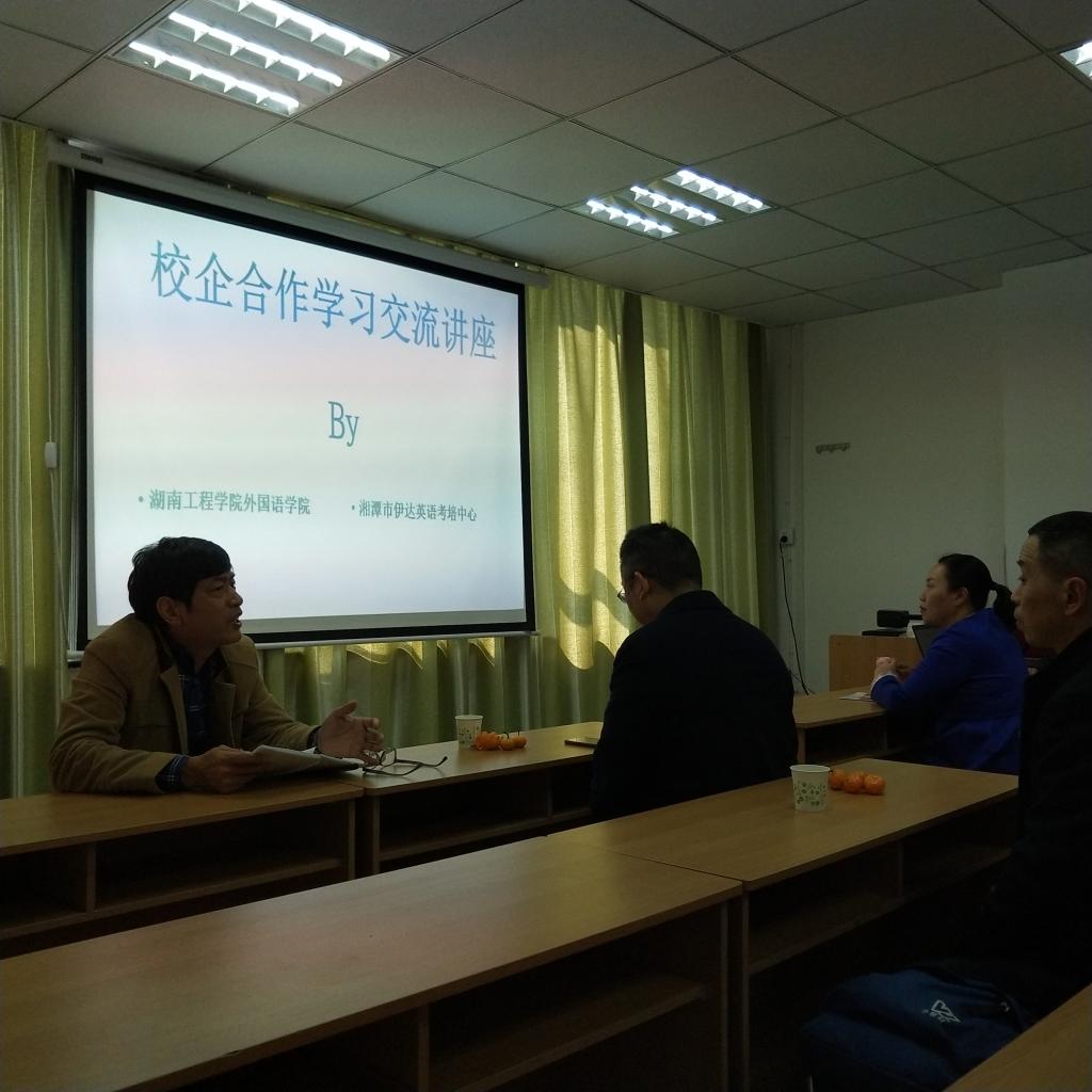 2019年11月22日,学院领导杨永和、罗胜杰率领12位专业教师和青年教师,来到湘潭市伊达英语考培中心,开展校企合作与专业培训工作,受到了伊达英语考培中心负责人司新先先生和剑桥英语考试培训总负责人朱曼莉教授等人的热烈欢迎。