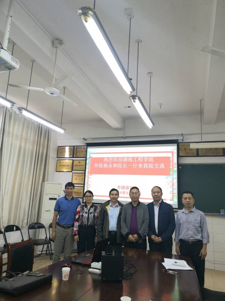 2020年湖南省大学生英语演讲比赛将于10月下旬在我校举行,为充分做好本次比赛的筹划工作,确保比赛成功举办,继昨日湖南省大学外语专业委员会会长曾凡贵教授来我校指导后,9月17日上午,388vip太阳集团官网院领导前往去年本赛事举办单位——湖南第一师范学院388vip太阳集团官网进行调研,就省级英语演讲比赛、省双一流专业申报与建设工作开展学习交流活动。