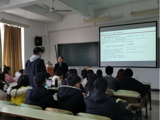 12月30日下午第5节课,英语教研室教师曾宇钧老师在A507举行了公开课,院领导杨永和以及来自英语教研室多名教师前往观摩。曾宇钧老师讲解的内容是翻译基础课程中的词语的翻译,她首先介绍了教学的目的及内容,她通过图片、视频、提问等多种方式,从词语的意义出发,通过译例的分析引导学生总结出词语的意义分类及翻译 同时,她还结合了时政新闻,联系到其背后的文化背景,在课堂上注入了思政元素。她态度认真,准备充分,内容熟悉,充分调动了学生的学习积极性。整个过程学生积极参与,课堂气氛热烈,教学效果良好课后,在教研室主任的主持下,对本次课进行点评,大家一致认为该公开课十分成功,课程设计非常完美,同时也在板书设计、例证的难度等方面提出了一些建设性意见。本次公开课为学院教师提供了一个相互交流和学习的平台,使大家在教学上得到了磨炼和提高,同时也充分展示了388vip太阳集团官网教师的风采。