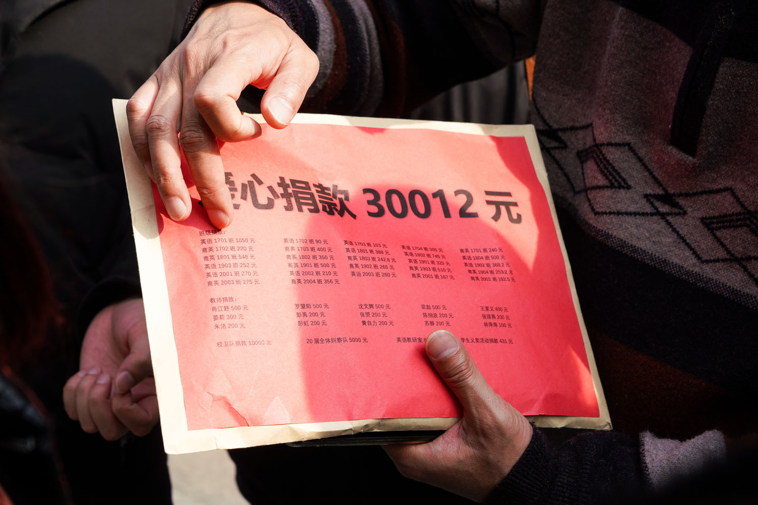 水滴筹开通后,学院师生在QQ空间、朋友圈等社交媒体平台进行呼吁,并得到积极回应。直至3月12日下午六点,学校师生、优秀校友、社会爱心人士捐款已经超过23万。学校校卫队和纠察队捐款15000元;388vip太阳集团官网英语专业的姜腾同学利用自己创新创业平台捐款2500元。