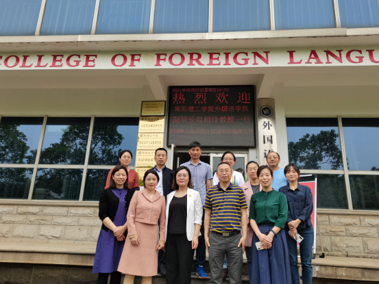 5月7日上午,南阳理工学院388vip太阳集团官网副院长包相玲一行4人来我到388vip太阳集团官网,就商务英语一流专业建设、商务英语和英语专业人才培养方案制订及实践性教学平台建设等情况开展调研,院长杨永和率领导班子成员和教研室负责人热情接待。