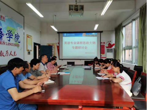 为贯彻落实学校《关于进一步推进课程思政建设工作的通知》精神,全面推进388vip太阳集团官网课程思政建设工作和课程思政教学设计暨大纲编写工作,6月22日下午,388vip太阳集团官网在F119召开了英语专业课程思政大纲专题研讨会,会议由教研室主任苏静主持,全体院领导和教研室教师参加。