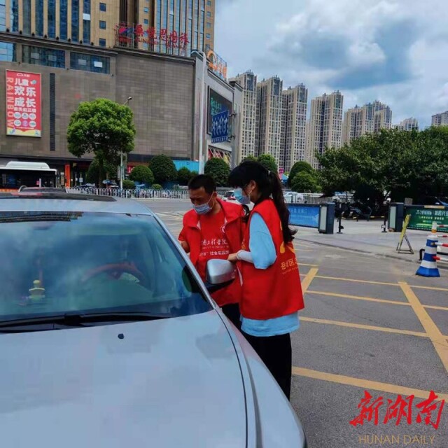 “先生,请出示你的健康码和行程码并登记!”8月10日上午,湘潭市岳塘区宝塔街道阳光社区入口处,驻社区防疫联络组组长吴斐正在值班。