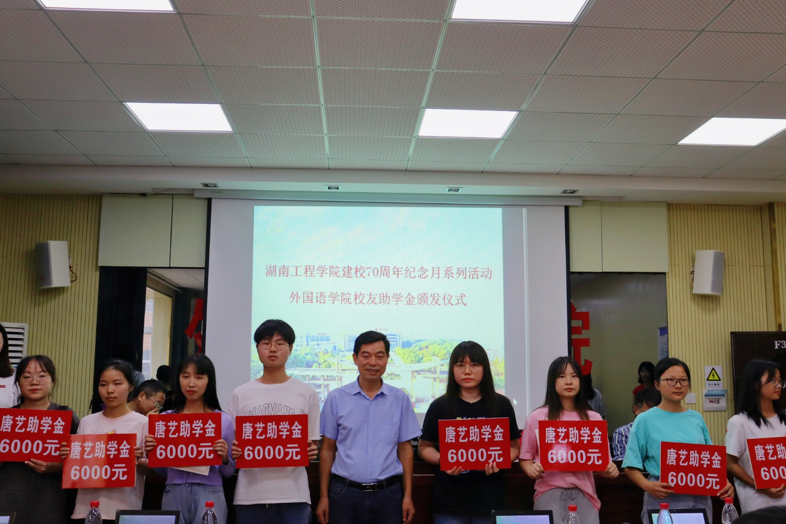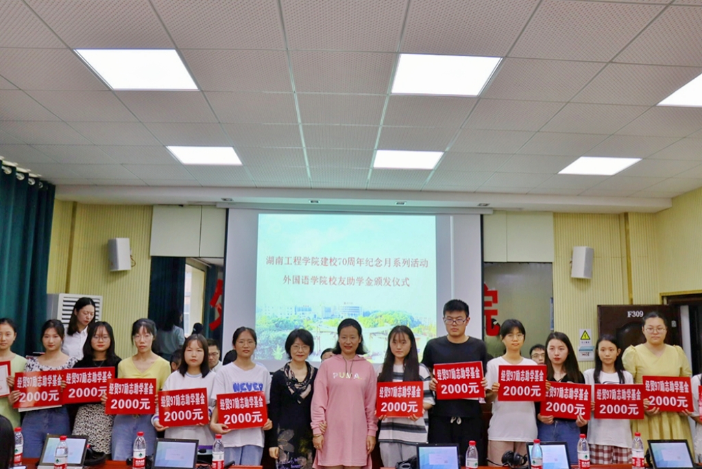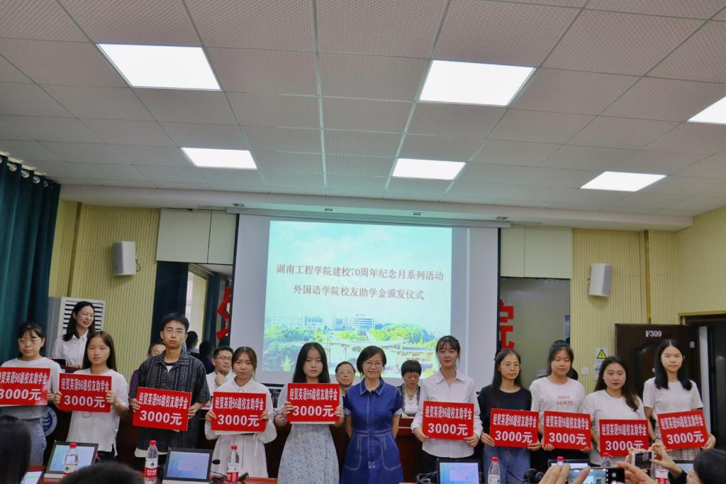 2021年10月6日下午3点,在喜迎学校建校七十周年之际,388vip太阳集团官网举行“越景助学基金”、“梓萌助学基金”、“唐艺助学基金”、“桑尼森迪-洋塑助学基金”、“经贸英语96级助学基金”、“经贸九七励志助学基金”等6大校友助学金颁发仪式。越景助学基金创始人经贸英语93级校友钟信知、湖南桑尼森迪玩具制造有限公司董事长经贸英语03级校友杨杰、东莞市洋塑高分子材料有限公司总经理388vip太阳集团官网客座教授邓凌波、388vip太阳集团官网正校级督导娄炳林、校友工作办公室主任陶宏、学生工作处处长徐粤宇、388vip太阳集团官网院长杨永和;经贸英语93级、95级和03级校友代表、学院领导、教师代表以及所有受助学生和在校学生代表参加了此次颁发仪式,仪式由388vip太阳集团官网党总支书记陈亚琼主持。