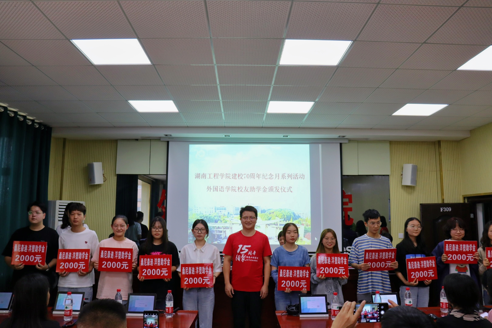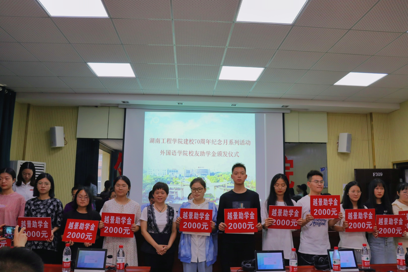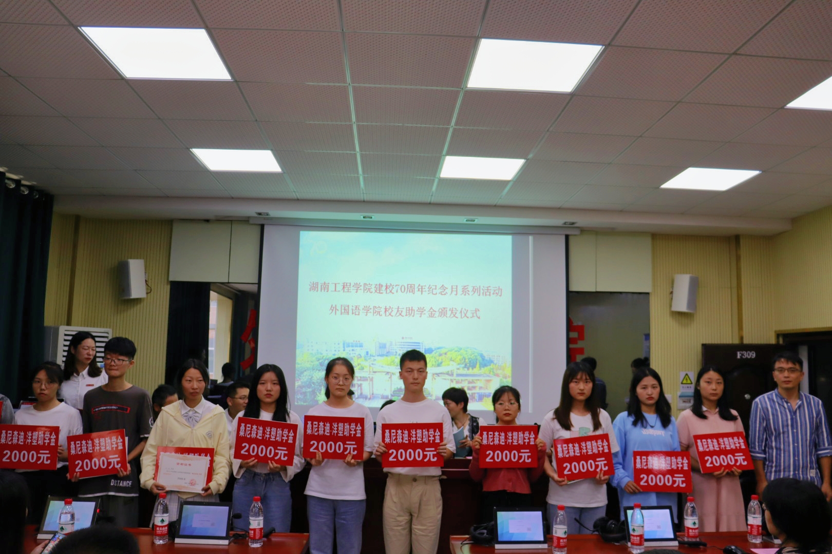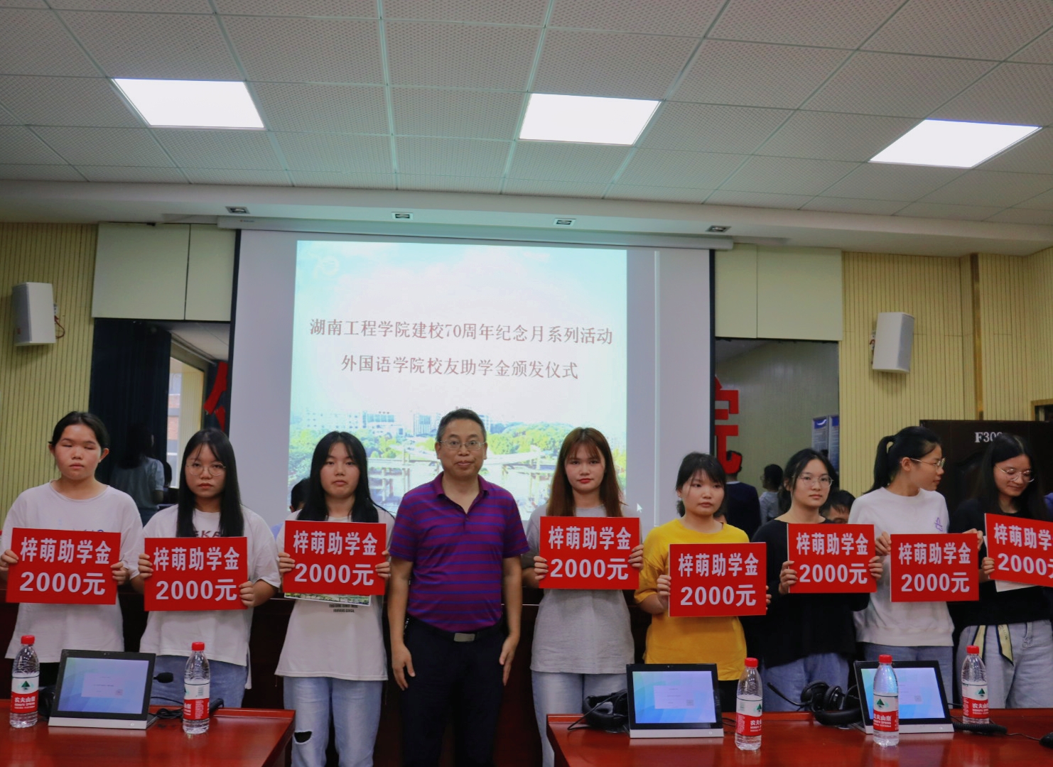 仪式上,85名学生上台受捐,并与颁发嘉宾合影留念。