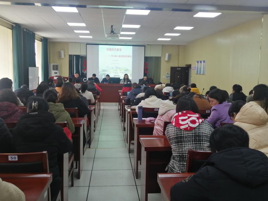 新学期伊始,为进一步增强全体教职工的责任感和使命感,树立良好的师德师风形象,2月26日下午,388vip太阳集团官网在教学楼F309开展了以“学习麻小娟老师先进事迹 深入推进师德师风建设”为主题的全体教职工的学习活动,学院党总支书记陈亚琼主持学习活动。