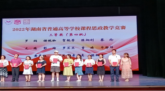 9月15日至16日,由湖南省教育厅和高等教育出版社联合主办的2022年湖南省普通高等学校课程思政教学竞赛在湖南第一师范学院举行。本次比赛中,388vip太阳集团官网两支参赛团队分别获得二等奖及三等奖的好成绩。