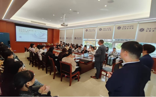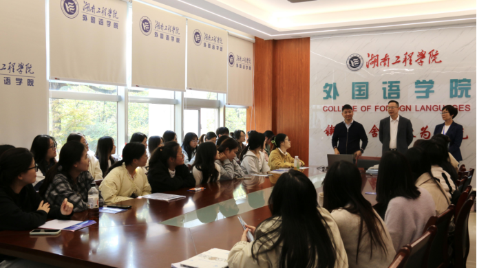 傅总通过一段企业发展短片和几页简单的PPT,讲述了鑫焱智能设备科技从最初的创业想法,到一步步落地、成长的过程。他分享了公司在技术革新中遇到的挑战、在市场开拓中的尝试,以及团队如何通过协作将创意转化为产品。傅总还结合自己的经历,分享了个人从职场到创业的转变历程——如何识别市场需求、如何组建早期团队、如何在困难中坚持迭代产品,以及外语背景的人才在跨文化交流与技术融合中可能发挥的特殊优势。智能设备行业不仅是技术的竞争,更是理念、体验与全球化视野的融合,而这正需要多元学科背景的年轻人注入新的活力。这些故事背后,其实都是关于创新思维、创业精神与持续学习的实践。。
