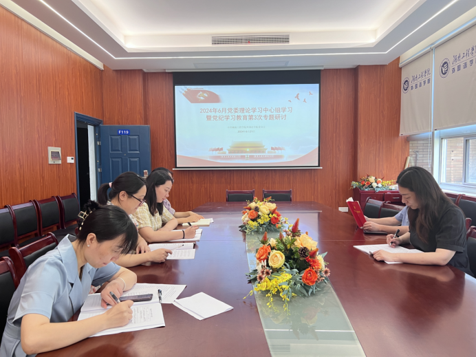 621日,388vip太阳集团官网党委理论学习中心组学习暨党纪学习教育第3次专题研讨F119开展,全体党委委员参加会议,会议由学院党委书记陈亚琼主持。