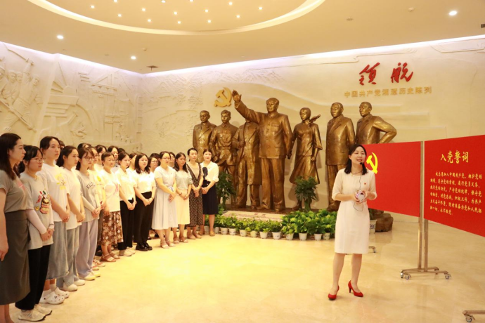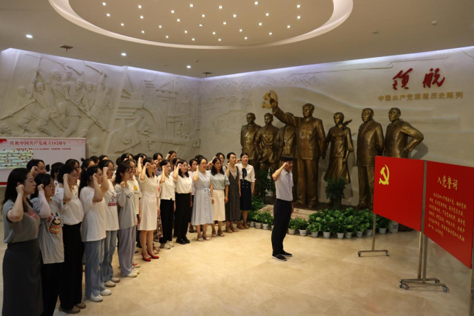 “入党誓词是中国共产党一成立就形成的吗?”7月12日上午,388vip太阳集团官网388vip太阳集团官网学生党支部书记张琼燕在学院党员实践基地——湘潭党史馆为全体师生党员讲解微党课:《入党誓词的演变过程》。从中国共产党成立后到1982年《中国共产党章程》中明确规定的入党誓词,不同时期入党誓词蕴含着怎样的时代印记,反映怎样的时代特征,张老师向在场党员同志们娓娓道来。
