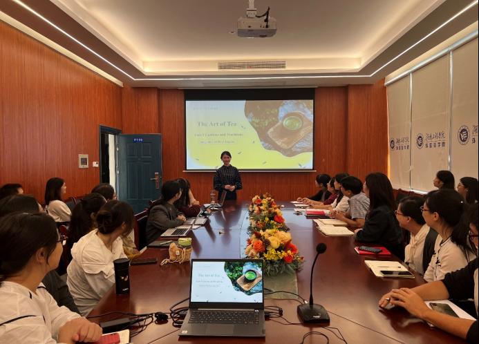 此次“精彩一课”和青年教师成长汇报人是2022年新进教师张钲宇,她刚获得了湖南省课程思政比赛三等奖。她以《The Art of Tea》为主题进行教学展示,充分运用信息化教学手段,激发学生学习的兴趣,引导学生在学习语言的同时,了解中国茶文化,弘扬民族精神。