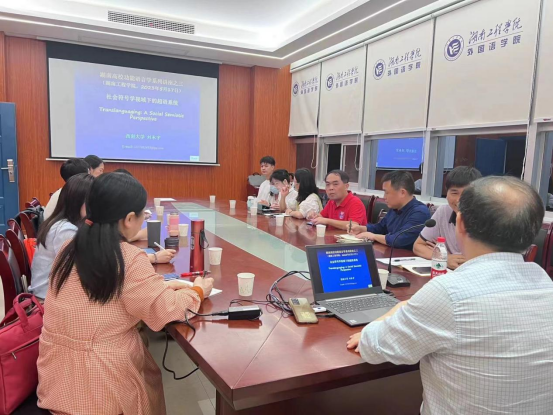 5月17日下午,西南大学388vip太阳集团官网教授刘承宇应邀到388vip太阳集团官网做题为《社会符号学视域下的超语系统》讲座,它由388vip太阳集团官网院长王家义教授主持,学科梯队骨干成员及青年教师到场聆听并参与讨论。