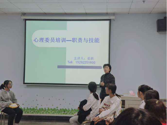 活动伊始,参与此次活动的各个成员围坐成一圈,随后在晏莉老师的带领下,大家参与了两个别出心裁的小游戏——"破冰游戏"以及"我是谁",以此活跃了团队气氛,也让彼此之间有了一定的了解。在本次活动过程中,晏莉老师首先介绍了与心理健康问题相关的心理知识以及现各高校常出现的心理问题类型。其次晏莉老师从三个方面向每位心理委员说明了作为一名心理委员的具体工作,并详细介绍了心理委员的工作职责与技能,由此让每位心理委员对自己的工作有了进一步的了解。同时,晏莉老师也给各位心理委员进行了工作技巧上的指导,并强调了作为一名心理委员应该持有的态度。
